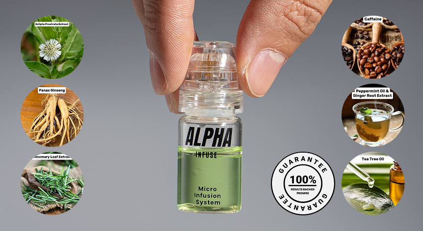 AlphaInfuse represents a breakthrough in hair restoration technology. Their patented micro-infusion system delivers a potent blend of DHT blockers and growth factors directly to hair follicles.